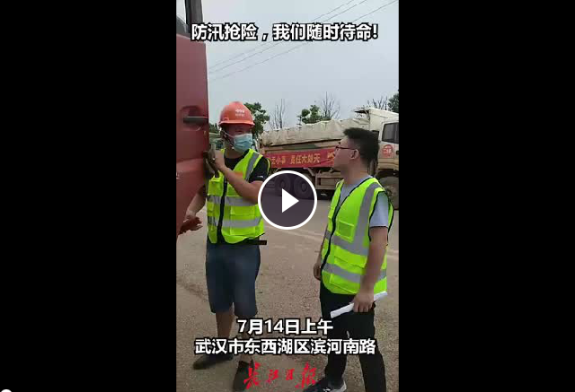 武漢建工集團(tuán)防汛搶險(xiǎn)第一分隊(duì)的260多位隊(duì)員與數(shù)十臺(tái)搶險(xiǎn)車輛及機(jī)械設(shè)備,在武漢市東西湖區(qū)濱河南路集結(jié)待命。