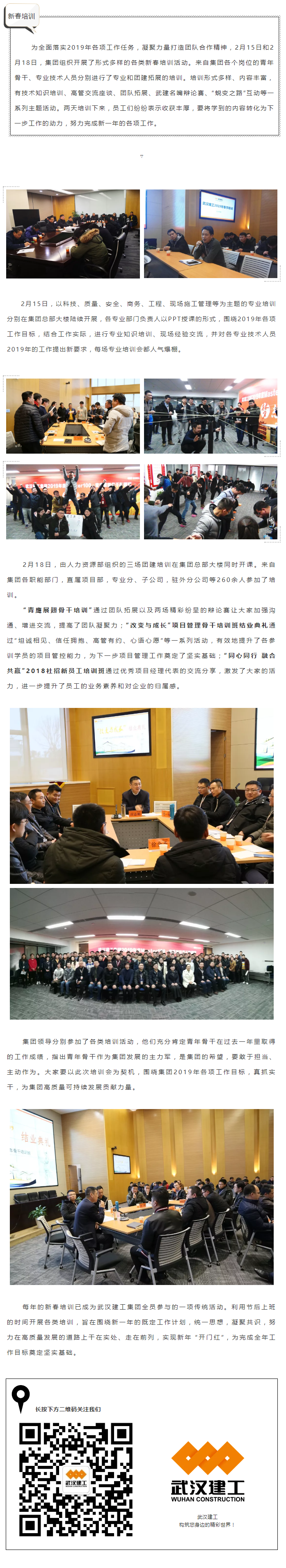 2月18日,武漢建工集團(tuán)召開2019年經(jīng)營工作會議。會議全面總結(jié)了2018年經(jīng)濟(jì)工作,分析當(dāng)前經(jīng)營形勢,安排部署2019年經(jīng)濟(jì)工作,動員集團(tuán)上下凝心聚力,為實(shí)現(xiàn)2019年工作目標(biāo)而努力奮斗。